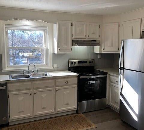 Clean, remodeled Ranch available for an ASAP move in! 2 bedrooms, 1.5 bath. This home has charm from the built in's to the original hardwood floors throughout! Enjoy one level living in this bright home! All new appliances including refrigerator, stove, dishwasher, washer and dryer! Please note, new windows throughout to be installed- on back order! Enjoy your very own 3 season porch and one car garage!