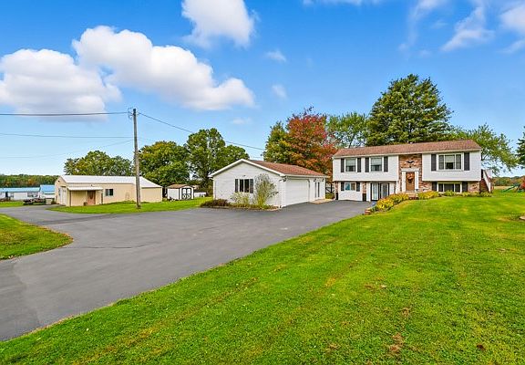 Peaceful Country Living at Its Best! Discover the perfect blend of comfort and space in this beautiful and meticulously maintained 3BD, 2BA, 2.5 garage home nestled on nearly 2 acres of serene countryside! Enjoy open views, fresh air and room to roam, whether you're relaxing on your 2-tiered, 20x12 covered and 9x8, Trex deck, or tending to your garden. Many updates include roof, kitchen and bath 2011, added bath and kitchen on lower level 2013 and more! A large 40x30 workshop provides the ideal space for projects, storage or hobbies. Tons of extra storage with 3 sheds, an out-building and a metal carport. Electric heat pump furnace currently offers a budget bill of $270 per month! With its quiet setting and endless potential, this property offers the best of country living just a short drive from town conveniences. A MUST SEE!