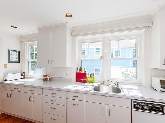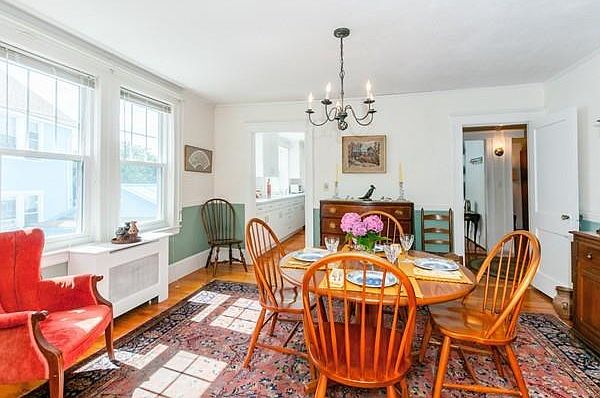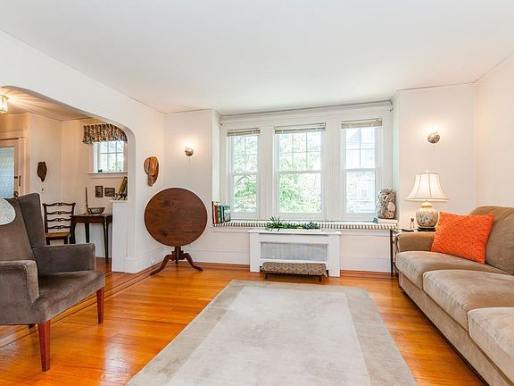 Welcome to Strawberry Hill and this charming and spacious unit a few doors down from Glacken Park and Fresh Pond. Lovely entrance foyer to kick off your shoes and hang your coat before entering the character filled living room with bay windowed window seat. Beautiful in-laid hardwood floors opens to a full size dining room with chair rail details - perfect for entertaining. Large eat-in kitchen bathed in light offers lots of counter space and cabinets and leads to private outdoor porch. 2 nice sized bedrooms with large closets. Updated bath with extra large vanity and fully tiled tub/shower. Other features: in-unit washer/dryer, replacement windows, hardwood floors, half a separated basement for lots of private storage, 1 garage space + 1 driveway space. Roof (6 years), all exterior trim and decks repainted (2017) Hot Water Heater (2012). Convenient to nearby restaurants/cafes like Sofia's, Sofra Bakery, shops as well as bike and walking trails.