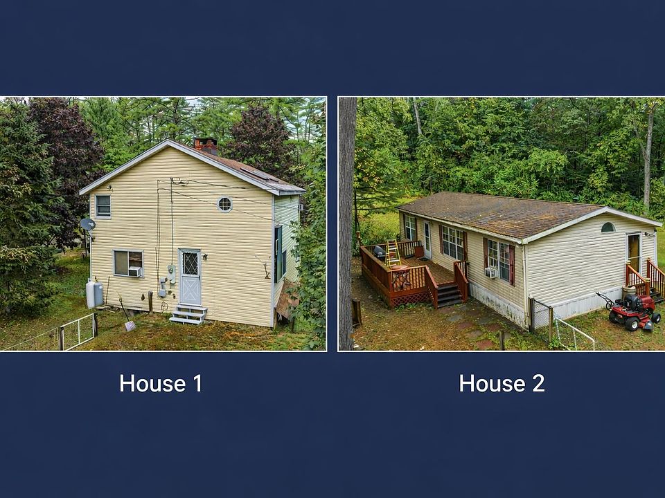 This is a RARE two lot offering!! It is located on Cemetery Rd in Arlington,VT with quiet, secluded lots. Great opportunity for multi-generational living, guest house, rental income, air bnb, extra space or great resale opportunity. House #1 is a two story house on 2.29 surveyed acres with 4 bedrooms and 1 ¾ bathrooms. The living room features a cathedral ceiling with skylights and a wood burning fireplace with beautiful river stone hearth. Has all new appliances. This house has a cozy light-filled layout and character. There is also a hand built 10x12 wood shed for extra storage. House #2 is on a separate 1.5 surveyed acre lot. It has a well maintained double wide trailer that has 3 bedrooms and 2 bathrooms. This house features a primary suite with a walk in closet and en-suite bathroom. These houses currently share a driveway that can easily be separated. This provides excellent flexibility for a new home owner. Both homes are being sold as is and are ready for you to bring your vision and make them your own. This is a unique chance to own two homes on two separate lots in picturesque Arlington setting. Note: some pictures have been digitally decluttered for a clearer view of the spaces and layout. Don’t miss out on this once in a lifetime opportunity!!