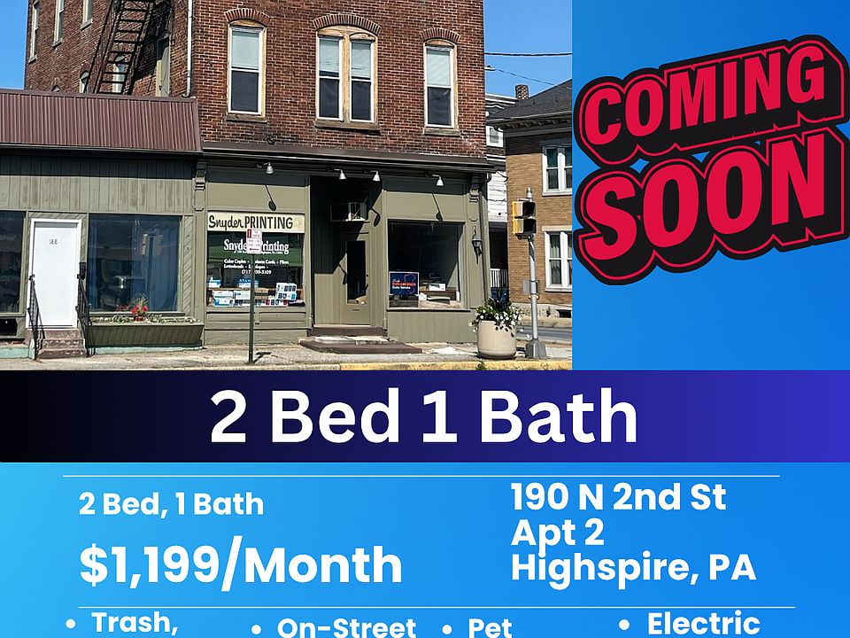 LBR Properties has a spacious 2-bedroom apartment available now in Highspire. Great location! Within walking distance to numerous local restaurants and bus route. Washer and dryer in apartment, fresh paint throughout!