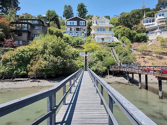 This is a classic Belvedere waterfront home, built around 1900, although updated for a current lifestyle, still maintains the character of Old Belvedere. The main level contains the living room, dining room, eat-in kitchen, family room, 2 bedrooms plus a bath. Up one story is the primary bedroom suite, 2 more bedrooms and a hall bath. On the top floor are 2 more bedrooms 2 baths, plus two more rooms that can be offices, or more bedrooms. Gardens surround the home, from the street, down to the deep-water dock in Belvedere Cove. A 2-car garage is located at the street level, with graceful steps meandering down to the house. A hillevator starts at the street level and lands down at the main level of the house. There is so much to love about this fabulous residence, and a great opportunity to live on SF Bay with stunning views of the Bay, Racoon Straits, two world-class yacht Clubs and more. Tenant pays for all utilities, parking in the garage