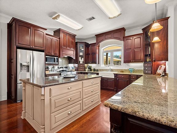Custom built home located on nearly 10 acres is a GEM . Stately presentation and enchanting detail, this home is sure to IMPRESS! Upon entrance, the STUNNING foyer, living room, and FORMAL DINING will take your breath away. A GORGEOUS kitchen complete with CUSTOM CABINETS, granite countertops, OVERSIZED island. opens to a beautiful family room, prefect for Entertaining. SPACIOUS Main suite features a spectacular walk-in shower and large garden tub. TWO SPACIOUS BEDROOMS ADD TO this one on a kind home Moving to the homes luxurious exterior. Fenced-in backyard features an in-ground pool and a complete outdoor kitchen including granite countertop, refrigerator, doubled sink and bar. Further, fully stocked pond, 30x30 heated mental/shop with 10' porch and 20x40 metal bldg. CALL TODAY!!