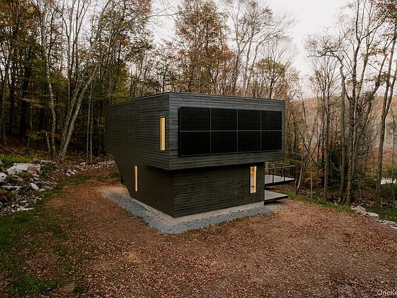 Designed by award-winning architect Marc Thorpe, Forest Edge is the fifth solar-powered residence built by Edifice Upstate in the Catskills. Perched on a secluded 2.6-acre hilltop overlooking a peaceful pond, the home embodies essentialist living — modern, efficient, and deeply connected to nature.