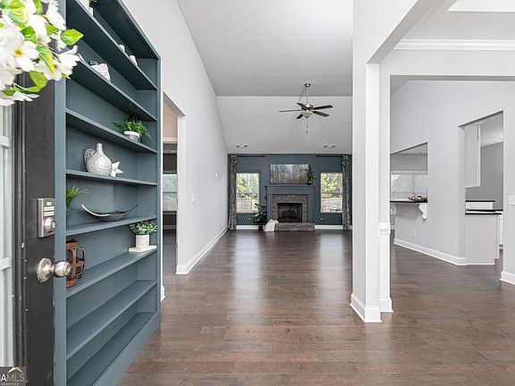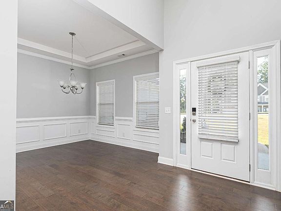 Built in 2020 and meticulously maintained, exceptional home truly outshines new construction with its thoughtful upgrades and attention to detail. Step onto the charming rocking-chair front porch and into the inviting foyer, where you'll immediately appreciate the gorgeous builtin's, hardwood flooring, elegant lighting, and the bright, open floor plan-perfectly designed for both entertaining and everyday living. The main level offers a formal dining room highlighted by wainscoting, crown molding, and a tray ceiling, setting a refined tone for special gatherings. At the heart of the home, the chef's kitchen impresses with abundant soft-close white cabinetry, granite countertops, a stylish tile backsplash, under-cabinet lighting, stainless steel appliances, a walk-in pantry, and a breakfast bar overlooking the sunny breakfast room. The kitchen flows seamlessly into the dramatic two-story family room with hardwood floors and a cozy stone fireplace. Just steps away, a covered back porch overlooking the large fenced backyard, creates the perfect spot for morning coffee, quiet evenings, or entertaining family and friends. The luxurious owner's suite is conveniently located on the main level and features a tray ceiling, ceiling fan, walk-in closet, and a spa-inspired ensuite bath. Relax in the soaking tub or refresh in the separate tiled shower, with double vanities, soft-close cabinetry, and tile flooring adding both beauty and function. Two additional bedrooms, a full bath with granite countertops and tile flooring, and a laundry room complete the main floor. Upstairs, you'll find an oversized fourth bedroom retreat with two walk-in closets and a spacious full bath featuring granite countertops, soft-close cabinets, and tile flooring-ideal for guests, teens, or a private home office. Beyond the home, enjoy fantastic neighborhood amenities including a sparkling pool, playground, and covered mail center. Conveniently located near WC Abney Elementary, restaurants, shopping, grocery stores, and parks, this home offers both comfort and convenience.