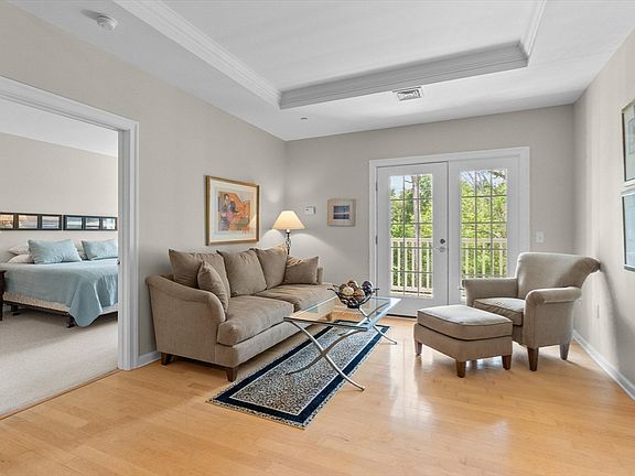 Sunlight streams through French doors, creating an ethereal glow across gleaming hardwood floors in this serene third-floor haven. Positioned perfectly as a middle unit, this immaculate residence offers the ideal balance of privacy and natural light. The thoughtfully designed living space flows seamlessly, anchored by french doors that frame tranquil views. Two generously proportioned bedrooms feature plush carpeting, creating peaceful retreats for rest or remote work. The well-appointed kitchen connects effortlessly to living areas, ideal for both quiet evenings and gracious entertaining. Practical luxuries abound: elevator access, spacious bedroom closets, in-unit laundry, and clever storage solutions throughout. The community beckons with a sparkling pool and near by parks. This meticulously maintained home should be your solution to convenient living. Surrounded by easy access to 495 or shopping yet cocooned in quiet, this residence offers a sublime escape from the everyday world.