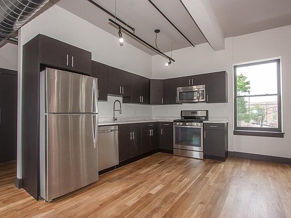 Welcome home to your new live-work loft. Gleaming hardwood floors and amble windows make this 1,418 SQ.FT unit an absolute gem. Steel beams stretch across the 12 ft. ceiling height, adding a nice touch. Direct access off Maxwell Avenue Alley, with only one unit per floor. All units in the Vito A. Lofts feature vast open floorplans. Pella oversized windows allow abundant light to filter through and brighten your day. Modern kitchen with Whirlpool stainless steel appliances, Caesarstone counters and custom cabinetry are a few more details that define your personal live-work loft. These unique spaces offer an airy feel with approximately 10-15 ft. ceiling height outlined with exposed ducts, and Wac track lighting. Units are pre-wired with Verizon FiOS, video intercom and equipped with washer and dryer. Treat yourself with the simplicity of a live-work loft that caters to your daily needs. Be creative, the opportunities are endless.