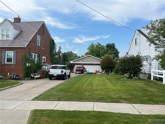 Welcome to 190 Clover Place. This well-maintained brick 2-family home, perfectly situated on a rare triple lot in Cheektowaga! This versatile property features a spacious 3-bedroom apartment on the first floor and a cozy 2-bedroom unit on the second floor, offering great potential for owner-occupants, investors, or multi-generational living. Enjoy the expansive partially fenced backyard, perfect for outdoor gatherings, gardening, or pets, along with a detached 3-car garage providing plenty of storage and parking. Relax on the welcoming front porch or unwind on the rear patio area. Major updates have been completed for peace of mind, including: (2) Furnaces (2013), (2) Hot Water Tanks (2020), drain tile and sump pump, glass block basement windows, updated insulation, Electrical service (2013), replacement windows throughout and more. Conveniently located near shopping, dining, and major routes, this solid brick home blends functionality and value with room to grow. Don’t miss your chance to own this rare find with space, updates, and income potential! Showings start right away. Showings start right away!