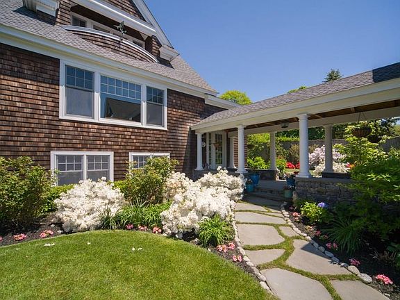 Desirable Coggeshall Avenue-Gracious, Immaculate & Bright Custom Built Shingle Style Home surrounded by colorful gardens and landscape. This private oasis consists of the Main House with 4 bedrooms/3.5 baths plus a separate Guest suite/In Law apartment with kitchenette over the garage attached by an attractive breezeway. Open floor plan consists of Apex Kitchen with granite counters & stainless appliances, dining area and lower level family room with French doors to patio & gardens. Formal dining room, living room with fireplace and first floor bedroom abuts full bath. Sun filled Master suite with balcony overlooking the grounds. Lower level family room/entertainment area. Beautiful gardens and mature landscaping surround the house and slate patio area perfect for family gatherings and entertaining. Outdoor hot and cold shower. Central Air, gas heat and much more. Garage has ping pong table. Easy walk to the beaches, The Cliff Walk, The Mansion and all Newport has to offer. Abuts Robinsky Park and approximately 1.5 miles to the center of Bellevue, Tennis Hall of Fame Shops and Restaurants yet peaceful. A Lovely setting for your vacation getaway. Available for the month of September 2025 for $23,000.Utilities included with a cap. JUNE 2025 Available for $25,000