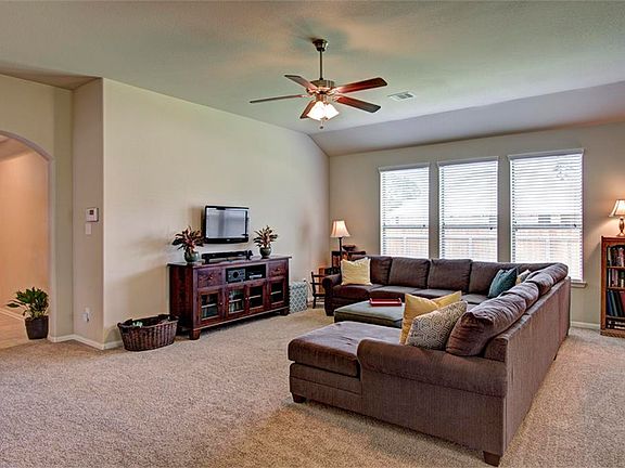 Better than new! Impeccably built/ designed home sits on a corner lot in a very private community. Brick w/stone accents lures you inside to a great open floor plan. Tile floors throughout kitchen dining,and baths. Home is Energy Star rating! All the extras have been added such as: Full backyard sod, 12 zone front and back automatic sprinkler system with ''rain gauge''. Garage has auto door openersalong with built-in work bench/ shelving. All rooms have ceiling fansincluding covered back patio.