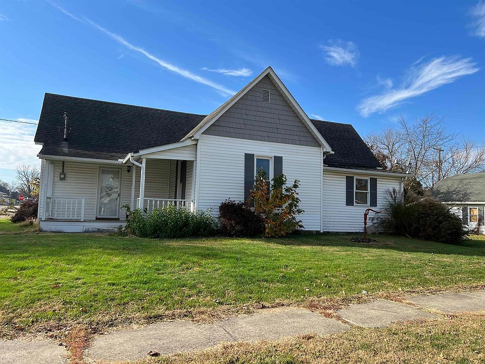 This sweet house is a diamond in the rough just waiting for you to make it your home! With 2 bedrooms, 1 bath, an amazing and inviting living room complete with beautiful exposed ceiling beams, hardwood floors just waiting to be refinished to perfection and a wood burning stove surrounded by a beautiful sandstone hearth. A living room just made for chilly fall nights around a crackling fire! Home is located on a large corner lot close to downtown, parks, and schools. Also included is a large garage, so you'll never run out of room for storage! Large laundry/mud room, covered front porch and back deck. So much potential here!