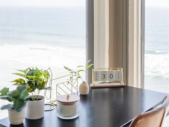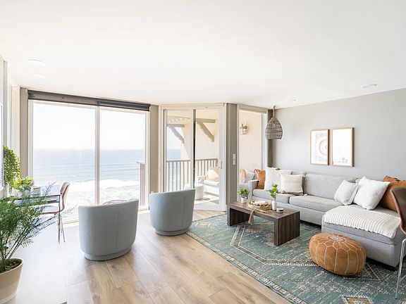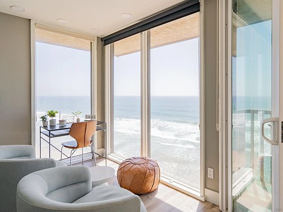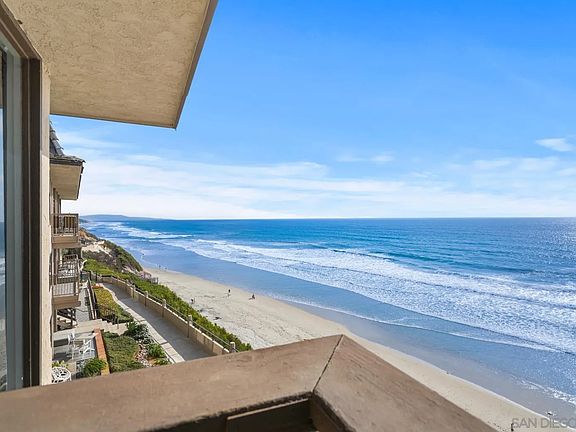 Coveted TOP FLOOR CORNER southernmost oceanfront condo in Del Mar Shores Terrace. Breathtaking white water views all the way to La Jolla. Unit has been remodeled including kitchen, countertops, cabinets, and appliances, complete remodel of bathroom including rain shower head and bidet sprayer, new vinyl wood plank flooring throughout. Walk in closet includes owner lock off for easy vacation rental option. Stacked in unit washer dryer. The condo also includes 3 GARAGE PARKING SPACES in close proximity to the condo. Del Mar Shores features oceanfront pool and spa, large community oceanfront clubhouse, securely gated and the ability to vacation rent weekly if desired. Walk right down to the beach using the beach stairs at the north end of the complex. Great walkability to Cedros Ave. which features great coffee shops, restaurants, cafes, boutiques and even the train and coaster station. Don't miss the amazing opportunity.