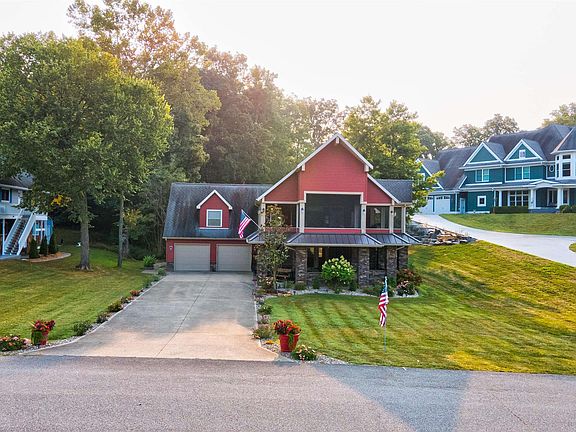 190 E Candy Cane Lane – Christmas Lake Village This home is a true lakeview dream with sweeping views of Christmas Lake, located just across from the boat docks—giving you the feel of lakefront living without the price tag. Step inside to find beautiful American cherry wood floors, an open floor plan, and a gas fireplace that adds warmth to the dining area. The kitchen is a chef’s delight, featuring quartz countertops, marble backsplash, a walk-in pantry, gas range, and six-panel wood doors throughout. Double doors lead you to a spacious screened-in porch with vaulted tongue-and-groove ceilings, the perfect place to enjoy morning coffee or evening sunsets. This home is as efficient as it is elegant, thanks to a solar panel system that helps reduce energy costs and supports sustainable living. The outdoor spaces are just as impressive with a huge deck, a covered patio with lighting, a backyard water feature, and storage under the deck. For those who love to garden, the property includes a greenhouse with running water and electricity. Offering 3 bedrooms and 3 bathrooms, this home also includes modern conveniences like an EV charger in the garage. Whether entertaining, relaxing, or simply soaking in the views, this home is built for both comfort and style.