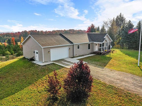 CUSTOM BUILT HOME!!!!! This is the one you've been waiting for! Built new in 2018/2019 this beautiful home has hilltop views for miles! The open concept floor plan makes this house feel warm and inviting and has great space for entertaining! The main level master suite is spacious and boasts a large walk in closet! The kitchen has a modern flair with a butcher block island and solid surface countertops! 2 car attached garage with a nice landing for shoes and coats. The basement is unfinished with 4 egress windows and a slider to the back yard! It is plumbed for a bathroom and has the ability to add another 1700 square feet to this home! Nice back deck for watching the sunrise and a covered front porch for watching the sunset! Located just across the road from Emerald Vale Golf Course and an easy commute to Traverse City or Cadillac.