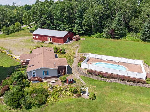Sit on your front porch and enjoy the views of Guilford Lake, sit on your lighted Gazebo and watch the geese on the stocked pond. Cool off in the 38x16 inground pool with new sand filter. Huge 40x80 storage building for garage, workshop, amazing space for any type of hobby. Beautiful ranch style home with 3 bedrooms, 2 full baths. Large master with bath. Eat in kitchen, plus formal dining room. 2 walk in closets. Kitchen has quartz center island and lots of cabinets and countertops. Beautiful hardwood floors, floating vinyl floor in kitchen and dining area. Carpets in bedrooms. First floor family room with propane fireplace. Laundry with shelving, side entrance to the laundry area. Furnace approx 8 years, all newer windows except one bedroom. Central Air. All on 8.44 surveyed and staked acreage. This home is a rare find and has been well maintained. Shed behind storage building doesn't stay.