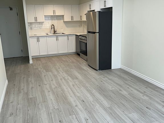 The bedroom is generously sized and includes a double closet, offering ample storage space. The front entryway of the apartment is also thoughtfully designed, featuring a large closet which is ideal for additional storage needs. The bathroom is beautifully appointed with a stylish vanity, providing sufficient space for personal products, and a gorgeous walk-in shower, adding a touch of luxury to your daily routine.