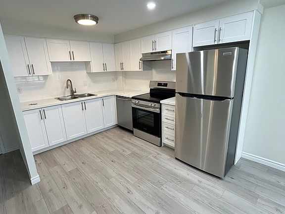 Recently undergoing a complete renovation, the apartment now features stunning luxury laminate flooring, creating an elegant and modern feel. The open-style kitchen is equipped with sleek stainless steel appliances, enhancing both functionality and style. The living room, illuminated by chic pot lights, exudes warmth and comfort, making it an inviting space for relaxation or entertaining. Additionally, the living room provides direct access to a spacious balcony that looks onto Gage Park, perfect for enjoying the outdoors.