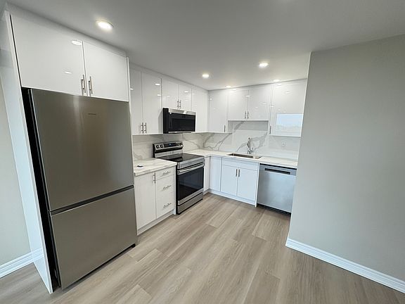 Recently renovated from top to bottom, the unit boasts elegant luxury laminate flooring that flows throughout the space, creating a clean and contemporary feel. The open-concept kitchen is both stylish and functional, complete with stone countertops, a double sink, and sleek stainless steel appliances. The adjoining living room is bright and inviting, enhanced by modern pot lights and direct access to the balcony, offering a seamless indoor-outdoor living experience.