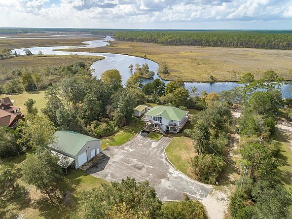 Imagine a winding river of sawgrass and reeds, with all the birds, fish, and the occasional boater to behold from the view of your new Riverside Estate in the protected region of the Forgotten Coast in Franklin County, Florida. Our beautiful county boasts a multitude of state parks, lighthouses, and wildlife sanctuaries to take in during a relaxing day trip from your new 5-acre riverside abode. This riverside beauty features three separate buildings, the main house, a "cook house" which could be converted into a guest house, and a massive exterior building where you can park both your RV and your big bay boat in your very own storage facility/workshop. The home also includes an elevator. The lot also boasts a boat launch, a fishing dock leading out to a deep water river where you can pull up to in your fishing boat. The dock has just been rebuilt and is ready for your family's feet to be heard running down it to see what the day's catch was! Surrounding your beautiful home site is your wooded acreage with beautiful grass meadows and a huge space to grow your estate even more, should you so choose. To find out more about this Florida Paradise, perfect for RV owners, and those looking for a quieter side of life.