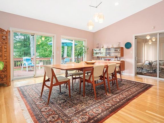 - Din Dscrp: Flooring - Hardwood, French Doors, Deck - Exterior, Main Level, Exterior Access, Ceiling - Cathedral, Slider, Recessed Lighting, Lighting - Pendant, Ceiling - Vaulted