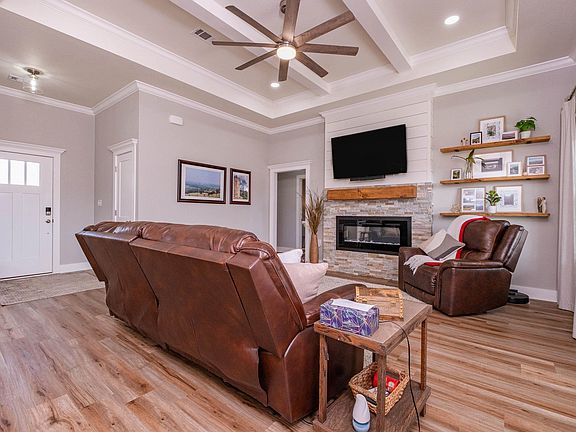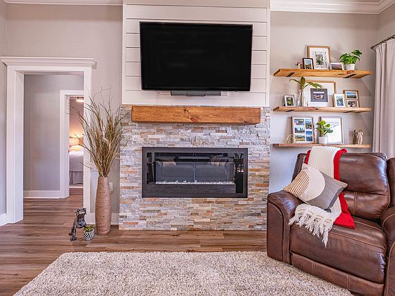 Updated fireplace and mantelTasteful finishesPatio with upgraded railing