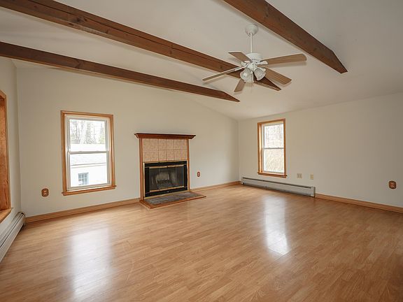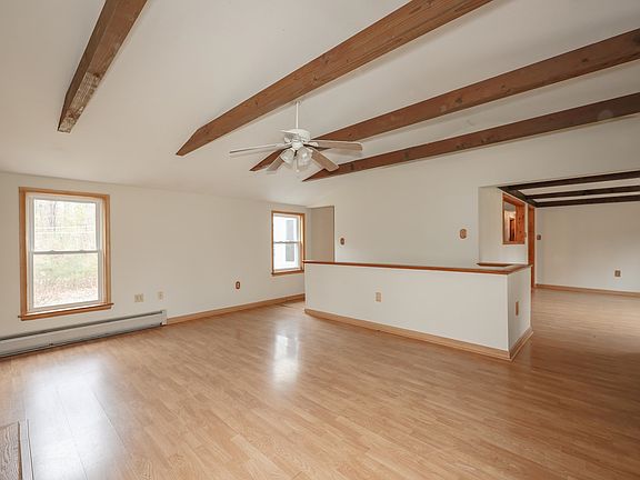 This wonderful ranch home will surprise you will all the space it has to offer. Situated on 3 acres with a 2-car detached garage, this property offers 3 bedrooms, open kitchen, and sunroom that leads to the backyard. The spacious family room is perfect for entertaining large gatherings and features vaulted ceilings with stylish beams, sundrenched windows, and wood fireplace. There is also another space that could be used as an additional family room, den, or dining room. Completing the home is 3 bedrooms with new carpets and an updated hall bath. Freshly painted rooms allow you to easily add your personal touches. Enjoy the summer days overlooking the wooded yard. The detached garage is perfect not only for vehicles but also hobbies and storage.