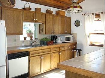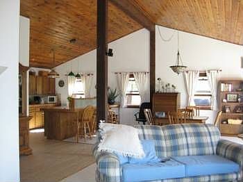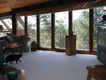 Wall of windows facing Pikes Peak & a vaulted T&G pine ceiling. Great room concept is wonderful for entertaining & keeping families together. A family room down stairs still allows for the kids & guests to have their own space too. The kitchen has tile floors & countertops & all appliances are included. Great family neighbor hood has lakes & a true mountain feel. Passive solar, wood burner & gas log FP keep this home warm & cozy.