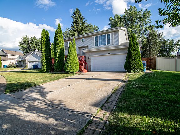 Discover abundant updated space inside and ample room to roam outside in this charming 4-bedroom, 2-bathroom home on an oversized lot. Step into the open-concept great room featuring a vaulted ceiling, bamboo flooring, and plenty of natural light, providing an inviting space for both living and dining. The stylish kitchen boasts stainless steel appliances, a beautifully tiled floor, a stunning stone backsplash, and sliding doors that lead to a balcony. The main level offers three well-appointed bedrooms, while the lower level houses a fourth bedroom. All bedrooms and the lower-level area feature new carpeting for added comfort. The ceramic baths include modern updates, with one featuring a sink and a granite vanity top. Spread out in the spacious family room with bamboo flooring, and enjoy the convenience of the large laundry room with sliding doors leading to the rear patio. The attached 21/2 car garage ensures protection from the elements. The fabulous fenced backyard is perfect for outdoor enjoyment, complete with a patio, deck, shed, and ample lawn space. Relax on the front deck, offering a peaceful retreat. Nestled in the desirable, quiet Valleywood subdivision, this home is a perfect blend of comfort and style.