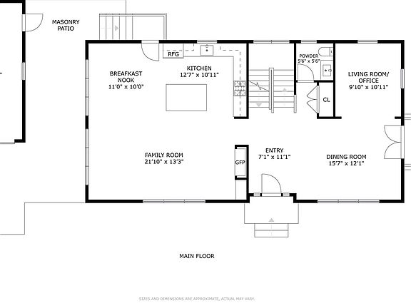 - Description: Entry Hall, Open Kitchen Family Room with Door to Garage, Formal Dining Room, Living Room, Powder room,