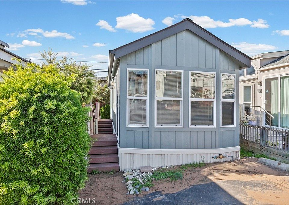 A cape code blue one bedroom and one full bathroom beauty of a home in El Morro park, just minutes away from the beach! Building 2010, there is a lot of natural light that flows through this home. Double pane windows throughout, carpet in great shape in the family/living room also equip with a ceiling fan, along with carpet in the bedroom. Ample storage in the bedroom as well. In the kitchen you'll find tiling flooring, a gas stove, microwave and refrigerator with lots of counter space for your kitchen needs along with overhanging storage for dishes and china. Lush dirt in front of the home, providing an area for planting a garden or flowers. Trex decking steps in good condition that lead up to both side doors. One of he most cost efficient ways around to live just walking distance away from the beach. A brand new water line was done recently with the whole driveway soon underway to have new asphalt. Don't miss this one before its gone!