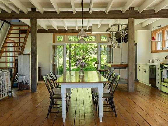 A secret refuge in the heart of Germantown. No car needed, just a short walk to Otto's, Gaskin's and the Universal Cafe & Bar. The residence sits at the end of a long driveway; it is a stunning renovation of a vintage barn with plaster walls and extraordinary views of the Catskill Mountains. The ground floor has two lovely bedrooms and a full bath. The main floor has a kitchen, dining room and living room with breathtaking views and on the third floor is a divine principal suite. Incredible light, central air, screened-in porch and lovely garden. A truly enchanting place to spend your summer.