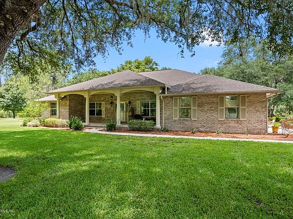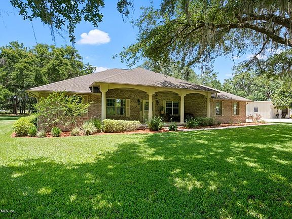 Beautiful custom built 4 bedroom 2 bath all brick home situated on 3.53 acres meticulously landscaped with mature trees (Red Maple, Magnolia, Orange, Japanese Plum and Oak) and a stocked pond. Welcome your guests as they enter from the large front porch into the foyer, with new wood-look tile and wood ceilings that extend to the family room. The master suite features a soaking tub, walk-in shower and his & her closets. The 2nd bath is also equipped with a separate shower and beautifully restored clawfoot tub. This home features a large kitchen with a walk-in pantry, breakfast nook, a formal dining room, fireplace, screened in Lanai, and much more. There is 30x40 detached insulated garage/carport as well as two additional sheds to for storage.