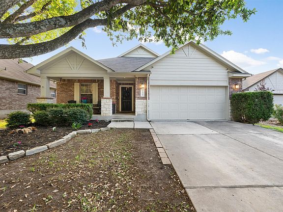 Lovely 1-story, 4 bedroom, 2 bath + office home in highly desirable Whispering Hollow subdivision. Cute covered front porch welcomes you! Terrific, open floorplan with vaulted ceilings & functional layout including large flex room perfect for formal dining, game room or secondary living space. Attractive & durable laminate wood flooring & ceramic tile in the living areas. Island kitchen with granite countertops, tile backsplash & tons of natural light is open to spacious breakfast room & family room. Wonderful MIL plan includes secluded primary bedroom with bay window. Primary bath features dual vanity sinks, garden tub, separate shower & walk-in closet. 3 additional bedrooms share a large secondary bathroom. Beautiful rock & brick exterior. Covered back patio & custom deck with privacy surround & hot tub - the perfect outdoor space to relax & entertain! Good-sized fenced backyard. Wonderful community amenities including pool with splash pad, park, playground, sports court & hike/bike trails. Highly rated schools including neighborhood Elm Grove Elementary, Dahlstrom MS & Johnson HS. Fabulous location convenient to downtown Buda & popular Main Street shopping & dining, SH45 toll & downtown ATX.