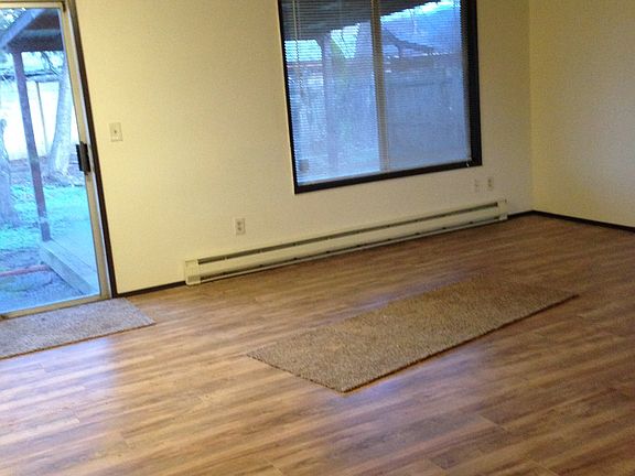 Beautifully remodeled home. New: carpeting, wood laminate flooring, kitchen counter, closet doors, bath sink, baseboard heaters. Additional storage behind garage 7.5 x13. Garage is 25x13. Close to schools. Playground across the street. Close to Eugene. Fenced yard. Large lot.