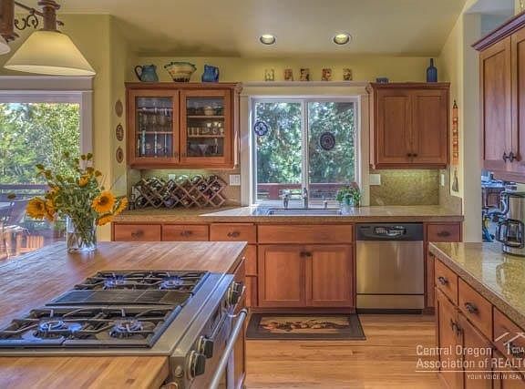 Great N.W. Downtown Bend Home! Almost 3200sf of pure living enjoyment close to downtown & Overturf Park features: extensive HW flooring, vaulted Great room w/gas FP, open kitchen w/granite & center butcher-block island/B-Bar, SS appl w/gas r/o + 2nd oven & pantry, huge fam room w/half bath, main level master w/walk-in & bath w/tiled soaking tub + shower stall, dbl tiled vanity, laundry w/W/D & wash basin, 900+sf daylight basement, 2+ heated garage w/alley access, beautifully landscaped fenced yard!