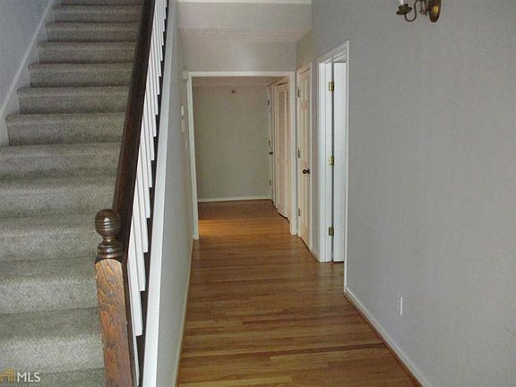 TYRONE, GA - This home looks brand new! One owner home. Wide entrance hall welcomes you to this custom built 3 bed/2 bath open concept Bungalow with refinished hardwood floors, master on the main. Open shelving in kitchen is original to the home, new refrigerator, granite counter tops, painted cabinets, pantry. Appliances stay. Tiled sun room off kitchen, overlooks the wooded, completely fenced backyard and deck for entertaining. Upstairs has new carpet and 2 identical bedrooms with skylights, walk in closets. Also, large bathroom and 2 hall closets. Attic fan and attic storage. Stairs from kitchen area lead to a full basement with 2 parking bays and 2 studded, unfinished rooms. Both garage doors are brand new. Wonderful front porch for enjoying your morning coffee. New Paint inside and out. House on cul-de-sac in this one street subdivision. Play fort in yard remains with the house. Minutes from Peachtree City, Tyrone, and Pinewood Studios, good schools, close to Interstate 85 and Hartsfield Jackson Airport. Make this your home today!
