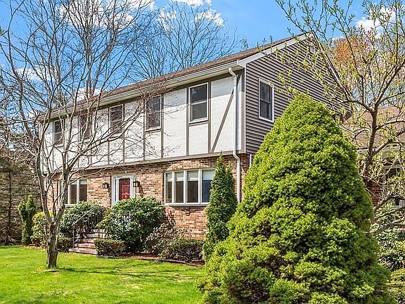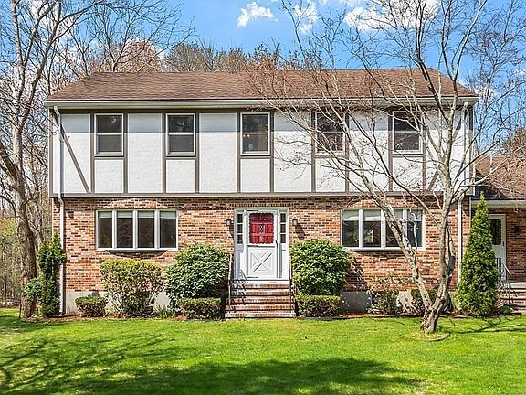 Five bed, 3.5 bath colonial with the convenience of a three-car garage. The home opens to an expansive family room featuring wood floors, fireplace, built-ins, and exposed beam ceilings. Adjacent to the family room is an eat-in kitchen with stainless appliances including a gas stove. The first floor also has a formal living room, dining room and laundry. Upstairs features a main bedroom of generous size with a separate bath. Finished basement adds one bedroom, office, and play/rec room in the lower level. The home sits on just under and acre of land with a deck overlooking a private backyard.