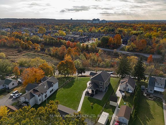 Luxury Living, Perfectly Executed! Perched high above the Merritt Trail overlooking a treed ravine, this custom-designed 2-Sty home blends architectural sophistication with inviting warmth. Professionally designed & renovated in 2016, this 2,050 sq.ft, 3+2 bedroom, 3.5 bath home rests on an expansive 108' x 180' lot, enclosed by elegant black iron fencing at the end of a quiet laneway. The owner spared no detail, ensuring every element of the home seamlessly unites design excellence with effortless livability. Every system in the home reflects a pursuit of perfection & has been thoughtfully designed & executed to the highest standard for efficiency, organization, and ease of operation. A natural stone and Hardie Board exterior opens to light-filled interiors featuring 3/4" engineered hardwood flooring, designer lighting & wall sconces, custom cabinetry, and wood doors throughout. The gourmet kitchen offers high-end built-in appliances, a large island with 2nd sink & wine fridge, while the adjoining dining room boasts a wall of windows and garden doors to a timber-framed covered patio. The living room centres around a natural stone gas fireplace flanked by custom built-ins.The 2nd level has 3 bedrooms including the primary suite - a private retreat with custom, wall-to-wall built-in closet cabinets, a walkout balcony, and a two-sided stone fireplace shared with the spa-like, 5 pce ensuite. The finished lower level provides a recreation area with kitchenette, 2 bedrooms, a 3-piece bath, and walkout-ideal for guests or in-law potential. Premium features include bsmt in-floor heating, Generac backup system, whole-home water filtration, exterior snow-melt system, built-in stereo system & speakers, video security, and much more.A detached double-deep (30'x40') garage offers 100-amp service, soundproofing, heat, A/C, Tankless HW & 2-pce bath - perfect for enthusiasts/hobbyists. Enjoy views of St. Catharines Golf Club & Burgoyne Woods & be minutes from Hwy 406/QEW Access.