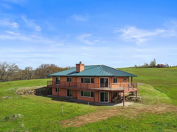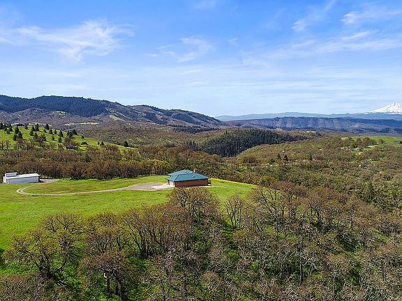 Property is back on the market due to prospective buyers failure to sell their home in a market outside of the Gorge and no fault of the seller. Welcome to your secluded retreat boasting stunning double mountain views and river panoramas. This home harmoniously blends into its natural surroundings with a standing-seam metal roof and stucco siding and is a solid, energy-efficient ICF Construction build. Stay cozy with in-floor radiant heat, a wood stove, and a double-sided fireplace, while a Heat/Energy recovery ventilator ensures comfort and fresh, circulated air throughout the home. The main floor features a primary bedroom, office, and 1.5 baths, with two more bedrooms and a spacious family room downstairs. A lower level flex space offers possibilities for creative use, potentially ideal for . The property also includes a 1,980 sq ft insulated steel shop with a wood stove. This 30-acre property offers a mix of pasture land with oak forest, includes a seasonal stream and pond and boasts acres of native wildflowers. The adjacent land owned by Columbia Land Trust offers endless exploration opportunities from your own backyard. Enjoy privacy and breathtaking views in this serene setting.