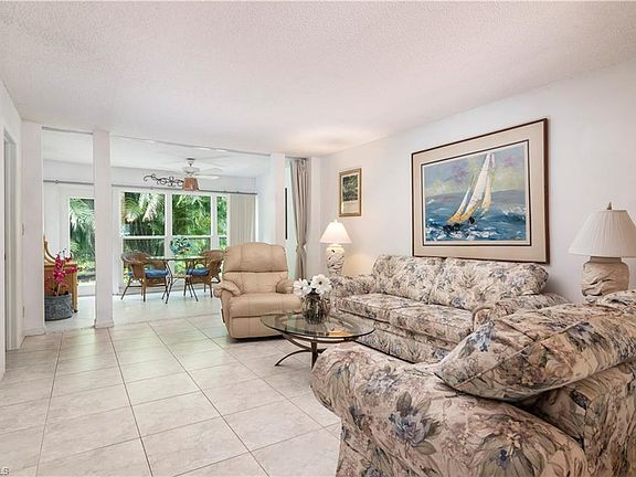 READY TO MOVE IN! Comfortable & spacious 2-Bedroom, 2-Bath Condo - 1st floor - in highly desirable Sunrise Location. IDEAL FOR FULLTIME AND SEASONAL RESIDENTS. INVESTORS SHOULD PAY ATTENTION AS WELL. Move-in ready and full of charm, this spacious 2-bedroom, 2-bath condo features a beautifully enclosed sunroom—your very own tropical retreat. Enjoy the privacy and tranquility of a desirable backyard, perfect for relaxing or entertaining. Inside, you'll find hurricane-resistant windows, ample storage, a large laundry room, and a walk-in closet in the expansive primary suite. The layout is ideal for both everyday living and hosting guests. Just steps from your front door is the community pool, offering the perfect spot to unwind and socialize. Low quarterly maintenance fee, which is including the associations flood insurance for the building. The location adds even more appeal—situated near major shopping centers, Publix, Walmart, a movie theater, and a variety of popular restaurants including Italian, Mexican, and Chinese options, plus Starbucks. All easily accessible by foot, bike, or car. Best of all, you're just 10 minutes from Tin City, the beach, and the shops and restaurants of Old Naples’ famed 5th Avenue and 3rd Street with upscale shopping options and world class dining choices.
