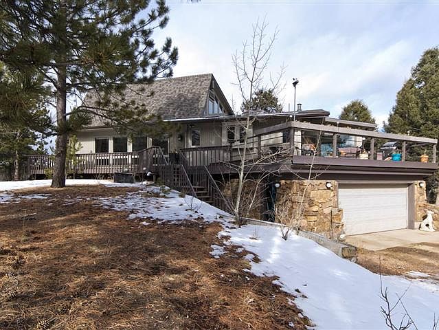 This exceptional property in Woodland Park is located at the end of a cul de sac offering lots of privacy. Home is tucked away in the Aspens and Pine Trees where wildlife abounds all year round. Easy access with Pikes Peak views. The home offers large great room with expansive vaulted ceilings and floor to ceiling windows. The focal point of the great room is the floor to ceiling moss rock gas fireplace with Copper accents. Walk out to back deck and fenced yard. Open concept kitchen with larg...