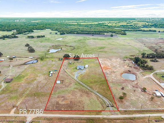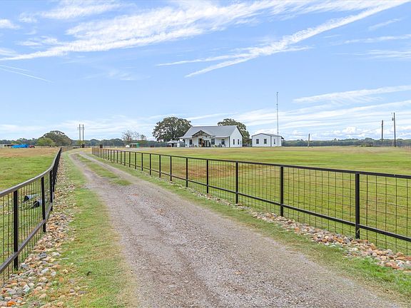 Custom barndominium on 5.87 MOL acres, with guest house! The main residence offers approximately 1,500 sq. ft. of open floor plan, with high-end finishes throughout, including Brazilian quartzite countertops, large kitchen island, electric fireplace, and a spa-style bath with a modern clawfoot tub and separate shower. The second residence adds about 500 sq. ft. of living space with one bedroom, one bath, and a kitchenette. Both units include washer and dryer hookups and covered back porches. Enjoy the recently purchased outdoor saltwater spa. Perfect setup for guests for family.   Property fenced with pipe fencing, security gate, animal barn and equipment barn.