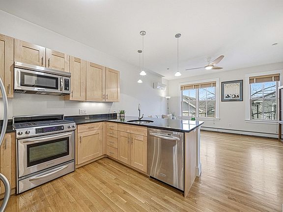 In-unit laundryDedicated garage parking spaceCentral heatWell-designed kitchenMaple shaker cabinetsStainless professional-grade appliancesTop-floor one-bedroom condo