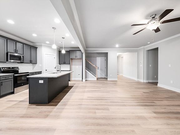 4-bedroom, 3-bathroom home situated in the heart of Gray. The main floor features the master suite and two additional bedrooms, a fourth bedroom and full bath are upstairs. The modern kitchen boasts granite countertops, an island, a tile backsplash, stainless steel appliances, and a spacious pantry. The bathrooms also have granite countertops. The master suite, off the family room, includes his-and-her vanities, a soaking tub, a separate tile shower, and an oversized walk-in closet. Additional features include a laundry room with a mud sink and ample cabinet space, LVP flooring throughout the main areas, cozy carpeting in the secondary bedrooms, and a covered patio for outdoor entertaining. Enjoy this prime location, within walking distance to downtown Gray,