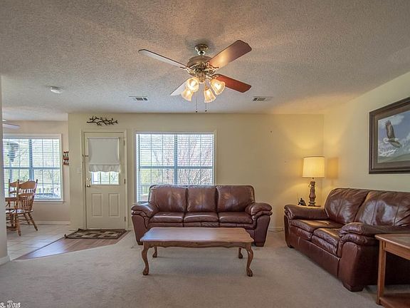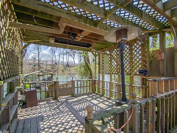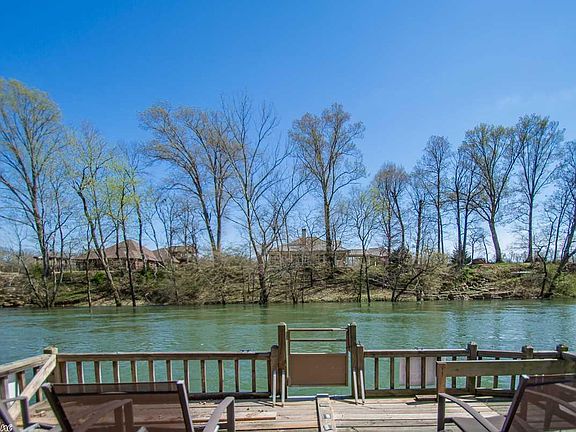 Riverfront perfection! Beautiful river view with large covered dock included. Property has 2 living areas, one of which has a closet and could be used as a third bedroom. Home includes refrigerator, with ice maker, washer and dryer, air conditioned 2 car garage, storage building in the back, and a large deck for entertaining!