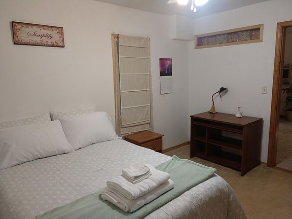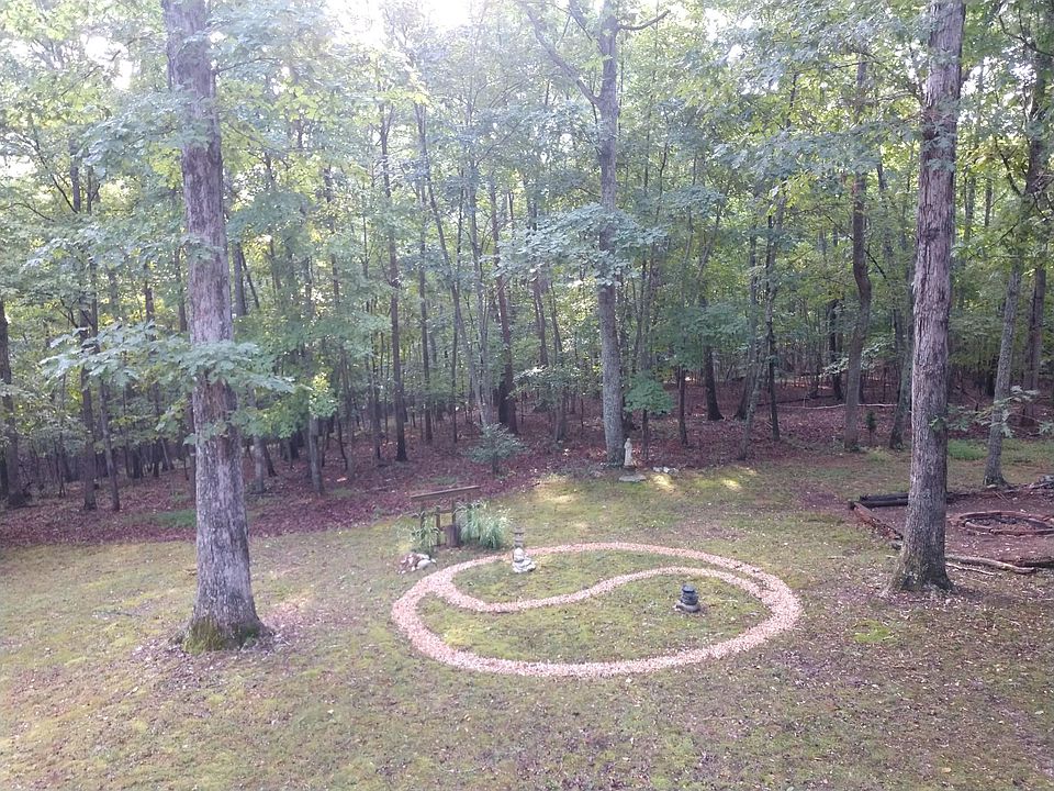 The quiet getaway on "lovely" lane (translation of Ramaa) and 1/4 mile down the road from the Satchidinanda Ashram - where yoga & meditation classes are held, and vegetarian meals are available for purchase. A small vegan coffee shop is also nearby in the quiet woods of Central Virginia. This home is one hour from historic Charlottesville and Lynchburg. Lovingston and Scottsville are only a 30 minute drive, and the state park can be used for camping, boating, and hiking is only minutes away. The James River is also nearby with multiple boat landings. This home can be single family or accommodate two families since the basement has a private entrance, and is fully equipped studio apartment with bedroom, bathroom, and kitchen. Laundry is located in the basement but in a common area with the heating pump and water filter system. House uses well water and has access to CenturyLink internet but Fiber is coming to the area in Spring 2022. Lot is sloped, mostly moss, so no need to cut grass. There is a firepit and a fenced in garden because you will see plenty of deer visitors. There is also a shed for storage and space underneath the spacious back deck to keep outdoor items. Driveway is graveled but Ramaa Ln is kept up by Yogaville so will be paved during snowy weather. Lot is on 4 acres and neighbors are on similar lot spaces, so you feel privacy in your own backyard surrounded by the forest. The colors are beautiful during the fall. Large windows in the main living room let in the sunrise through the treetops, and makes the back deck perfect for potted plants.