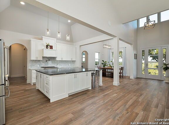 - Two Living Area, Eat-in Kitchen, Two Eating Areas, Kitchen Island, Breakfast Bar, Pantry, Study/Library, Media Room, Utility Room Inside, Secondary Bedroom Down, 1st Floor Lvl/No Steps, High Ceilings, Open Floorplan, High Speed Internet, Telephone, Walk-In Closet(s), Master Downstairs, Ceiling Fan(s), Chandelier, Wet Bar, Solid Counter Tops, Custom Cabinets