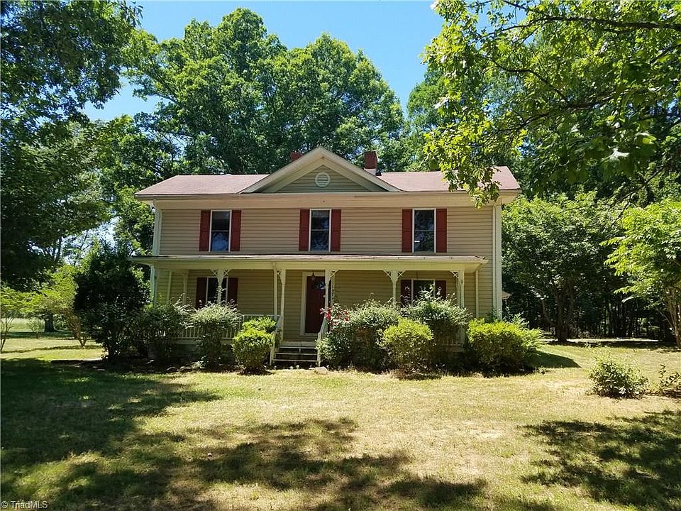 Country home with 3 covered 32 ft porches,Oak shade trees,circle drive and 2nd drive to attached 2 car garage.2400 + sq ft,hardwood floors,large laundry,master bedroom on first floor,over 3 acres out in the middle of 91 acre tract so only 1 neighbor.Lots of updates,2 stair cases to the upstairs,lots of landscaping,beautiful views,NO CITY TAXES,dan river water.Call to set up private showing