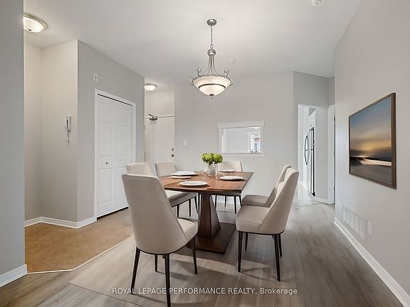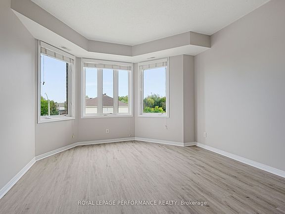 This delightful END UNIT condo in Orleans, featuring 2 beds/2 baths/2 PARKING. Updated with luxury vinyl floors and freshly painted, this home offers a spacious open layout with 9 ft ceilings and plenty of natural light. The large living room, with its bay window, provides stunning panoramic views. The luminous eat-in kitchen has ample cabinetry and newer appliances, leading to a balcony through patio doors. The primary bedroom features a cheater door to the main bathroom, which includes a separate tub, a standing shower, and in-unit laundry. A 2-piece bathroom adds convenience for guests. The secure building offers front and back entrances and covered bike storage. Located in the vibrant East Village neighborhood, this condo is perfect for outdoor enthusiasts, with easy access to paths, parks, and sports fields, along with nearby bus services and amenities. Some photos are virtually staged. Rental application, proof of employment/income, references and credit check required.