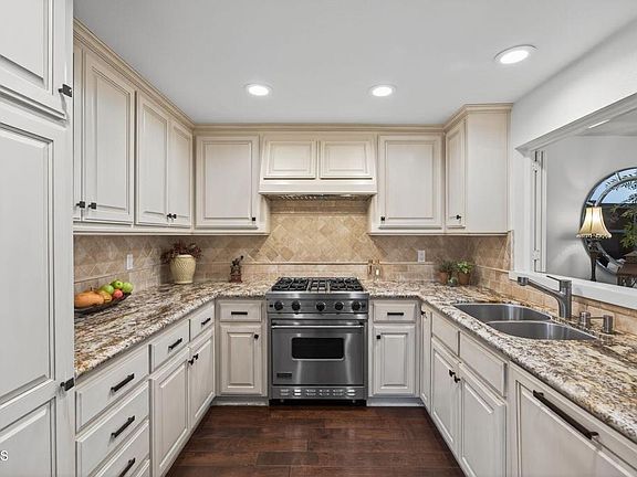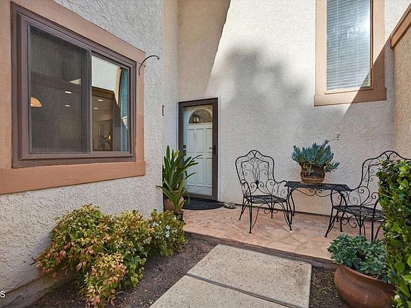 Beautifully Upgraded 3-Bedroom, 2-bath Town home in the desirable Shadow Mountain Tennis Club neighborhood. Nestled on a cul-de-sac in the scenic rolling hills of Newbury Park, this special 2-story home features a spacious primary bedroom suite conveniently located on the first floor and abundant closet space throughout. The lovely remodeled kitchen boasts premium finishes, including a Viking stainless steel stove & refrigerator, granite counter tops, built in dishwasher, custom cabinets with pull out drawers and a sunny breakfast nook to enjoy your morning coffee or tea! Step into the inviting living room with a cozy fireplace and enjoy seamless indoor-outdoor living with direct access to a private patio - perfect for entertaining, relaxing on your chase lounge chair, or enjoying fruit from your own Pomegranate or Cara Cara orange trees. There are two bedrooms and one full bath upstairs, one of the bedrooms has it's own balcony with east facing views. This home also includes a separate dining room, lots of natural light, high ceilings, dual pane windows, ceiling fans, plantation shutters, and an attached 2-car garage with attic storage space along with ample guest parking close by. Residents enjoy access to fantastic community amenities, including tennis courts, a sparkling outdoor pool, a clubhouse and peaceful walking paths. Ideally located near hiking trails, shopping, restaurants, Ragamuffin Coffee Roasters, Trader Joe's, Newbury Park High School, and more. This is California living at its best! These homes rarely come on the market, schedule your private showing today.